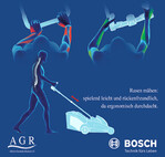 Die Rotak Akku- und Elektro-Rasenmäher von Bosch gewährleisten eine rückenschonende Körperhaltung und Handhabung. Die Höhenverstellbarkeit der Holme ermöglicht ein Anpassen an verschiedene Körpergrößen und sorgt dadurch für ein ermüdungsfreies Arbeiten in aufrechter Haltung. Die ergonomische Form und Positionierung der Handgriffe verhindert ein Abknicken der Handgelenke beim Lenken des Mähers. Die einfache Bedienung der Schalter sowie die Möglichkeit, verschiedene Greifpositionen einzunehmen, sichern zusätzlich eine physiologische Handhabung. Zudem lässt sich der Rasenmäher durch sein geringes Gewicht und die gleichmäßige Gewichtsverteilung leicht manövrieren und verstauen.