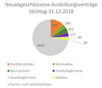 Laut den Ausbildungszahlen von Destatis, die der Zentralverband Gartenbau (ZVG) ausgewertet hat, wurden das zweite Mal in Folge mehr als 5.000 Neuverträge, nämlich 5040, bis zum Stichtag 31.12.2018 abgeschlossen, 0,4 % mehr als im Vorjahr. Die größte Steigerung zum Vorjahr ist bei der Fachrichtung Staudengärtnerei mit 13,3 % bei neuabgeschlossenen Verträgen zu verzeichnen. Den höchsten Anteil an Ausbildungsverträgen hat der GaLaBau abgeschlossen - mit 3669.