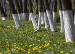 Durch die oft massiven Temperaturschwankungen zwischen Tag und Nacht – besonders im Spätwinter und Frühling - sind Bäume und Sträucher großen klimatischen Belastungen ausgesetzt. Der Wechsel von Nachtfrost auf starke Sonneneinstrahlung tagsüber verursacht die Bildung von Kondens- und Schmelzwasser, das sich in natürlichen Rindenöffnungen sammelt und dort gefriert. Dies führt zu einem Aufplatzen der Rinde sobald die Sonneneinstrahlung wieder zunimmt. Des Weiteren wird dadurch die Zellstruktur des Baumes in Mitleidenschaft gezogen. Um diesem Effekt - der durch die dunkle Rinde von Obstbäumen, wie beispielsweise Kirschen, sogar noch verstärkt wird – entgegenzuwirken, werden die Stämme mit speziellen weißen Schutzanstrichen versehen. Die Farb- und Beschichtungsexperten der griwecolor GmbH haben mit ihrer Baumschutzfarbe BS1-700 ein neuartiges Pflanzenstärkungsmittel für diese Art und Weise des Pflanzenschutzes entwickelt.