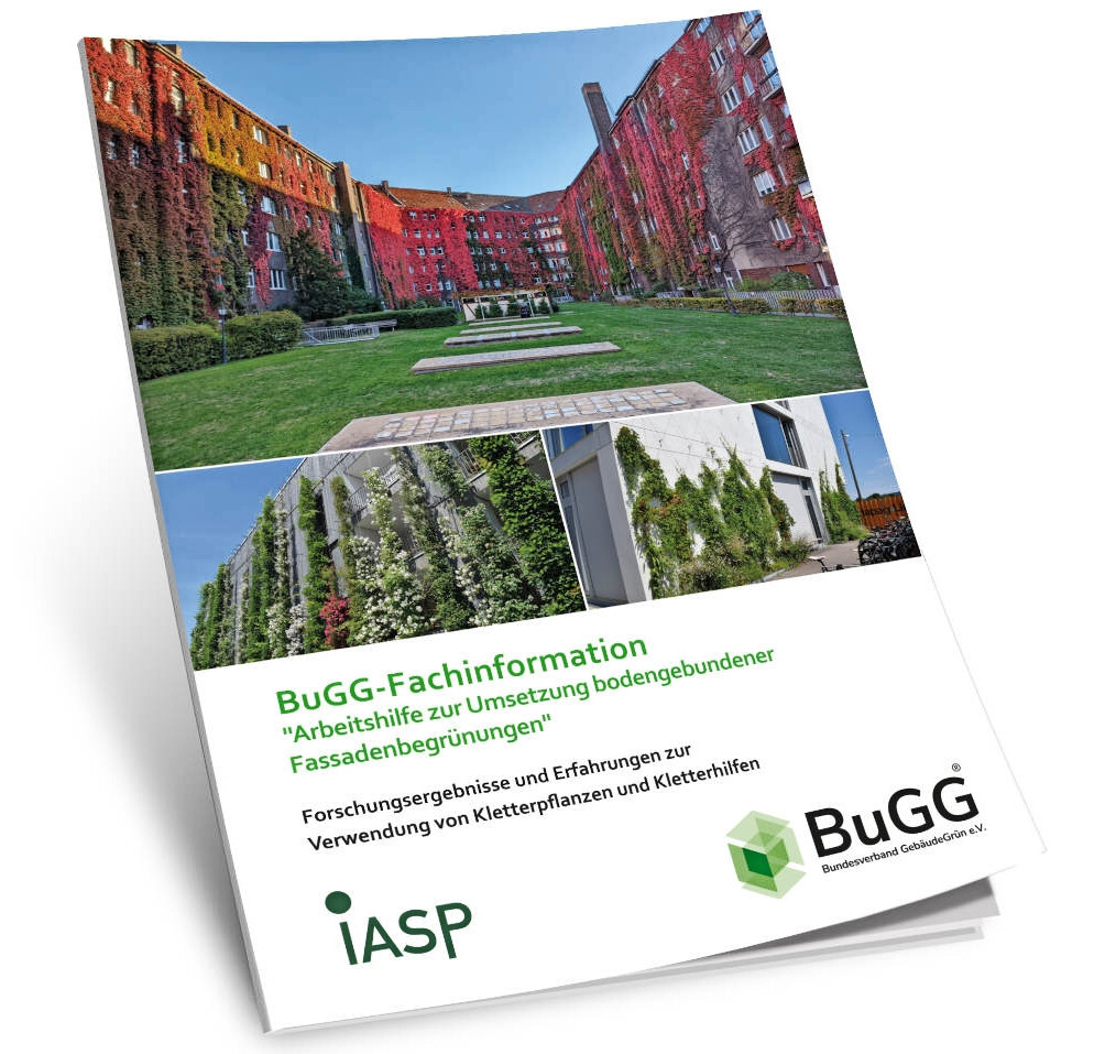 Forschungsergebnisse und Erfahrungen aus dem Zusammenspiel Fassadenkonstruktion, Kletterhilfe und Kletterpflanze sind in der neuen BuGG-Fachinformation aufgeführt. Dabei werden bewusst die Fassadenkonstruktionen, Typen von Kletterhilfen und Kletterpflanzenarten beschrieben, die in der Praxis weit verbreitet sind und bei den vorgenannten Untersuchungen erfasst wurden. Die so ermittelten gängigen Fassadenkonstruktionen und Kletterpflanzenarten werden in Form von Steckbriefen beschrieben und über eine Übersichtsmatrix ist schnell erkennbar, welche Fassade mit welcher Kletterhilfe und Pflanze funktionieren kann.
