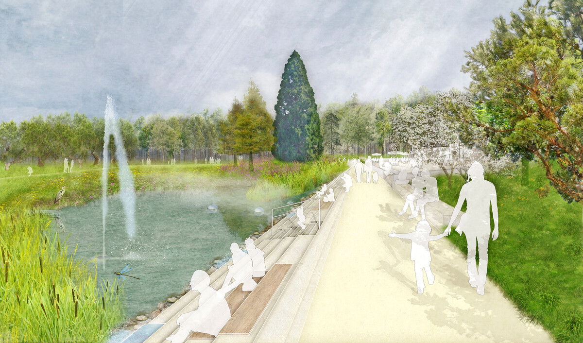 Auch nach dem Ende der Landesgartenschau 2026 bleibt das umgestaltete Areal der Galopprennbahn als Stadtpark „Grünes Herz“ erhalten.