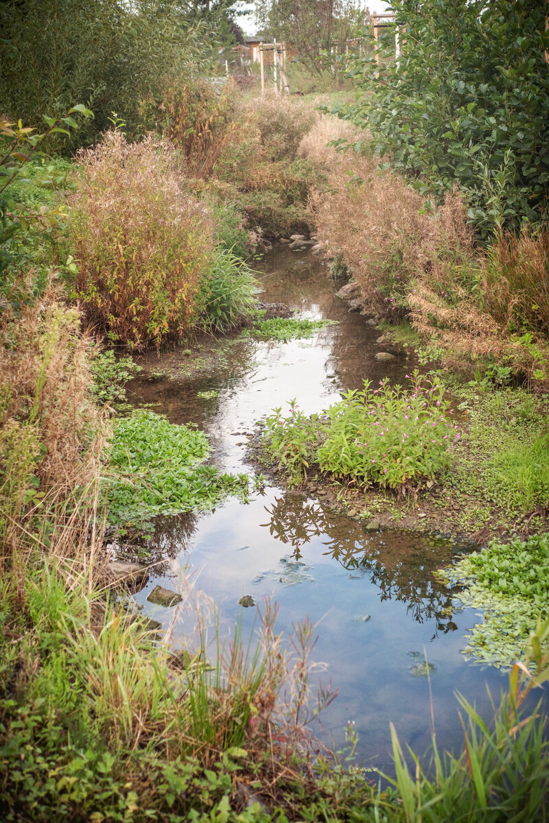 5Wie Wandel funktionieren kann, hat die Landesgartenschau Ellwangen bereits jetzt bewiesen. Aus dem Großparkplatz Schießwasen und den zuvor nahezu ungenutzten Auwiesen entsteht ein pittoreskes und zeitgemäßes Naherholungsgebiet, das viel Platz für Pflanze, Tier und Mensch bietet. Durchzogen wird das rund 26 ha große Gelände von der Jagst. Der Fluss ist in den vergangenen Jahren aufwendig renaturiert worden und fließt nun wieder in natürlichen Mäandern. In den 1950er-Jahren war die Jagst aus Gründen des Hochwasserschutzes begradigt und in ein Steinbett gelegt worden – nahezu unzugänglich für den Menschen. Nun aber, im Zuge der Umbauarbeiten, kann der Fluss ganz nach dem Leitsatz „Ellwangen an die Jagst“ wieder erreicht und genossen werden – zum Beispiel am Sparkassen-Stadtstrand, der derzeit entsteht.