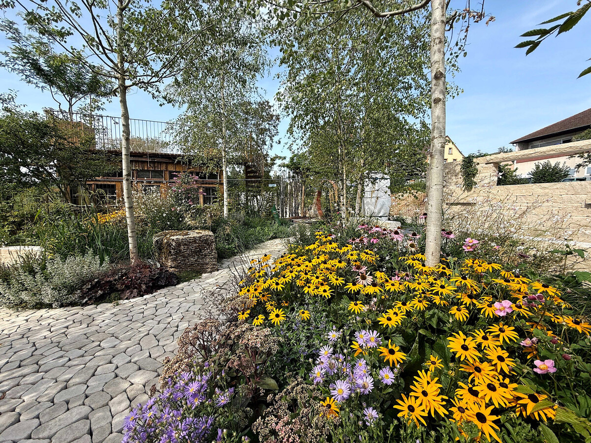 9Ein weiteres Schlüsselprojekt ist die Gartenstadt. Wo einst mehr als 850 Garagen die Landschaft versiegelten, entsteht ein 5 ha großes Areal, das während der LGS acht innovative Themengärten des GaLaBau-FV Hessen-Thüringen sowie Beiträge von Baumschulen und Friedhofsgärtnern präsentiert. Nach 2026 bildet diese grüne Infrastruktur die Basis für ein nachhaltiges, naturnahes Wohnquartier.