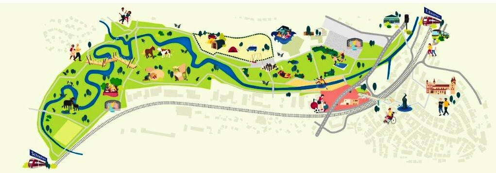 3Das Areal der ehemaligen Galopprennbahn zwischen Kirmesplatz und der Neusser Innenstadt wurde für die Landesgartenschau bereits seit 2024 aufwendig nach der Entwurfsplanung des Berliner Büros „Franz Reschke Landschaftsarchitektur GmbH“ in einen neuen Stadtpark mit rund 38 ha umgebaut, der dauerhaft erhalten bleibt. Direkt neben dem Park entsteht ein neuer Stadtteil mit 1.500 Wohnungen. Zudem soll ein neuer Radschnellweg Neuss und Düsseldorf verbinden.