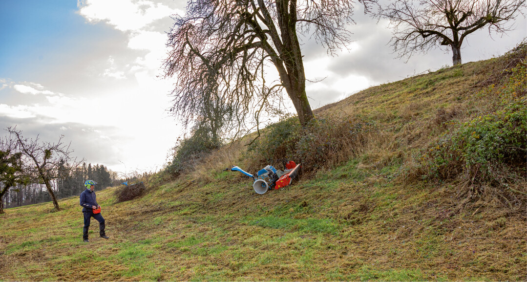 Steile, unbegehbare Hänge und gefährliche Bereiche sind die Domäne der ferngesteuerten Maschinen. Sie kommen fast überall hin und mähen beinahe alles, ohne dass sich der Bediener oder die Bedienerin einer Gefahr aussetzen muss.