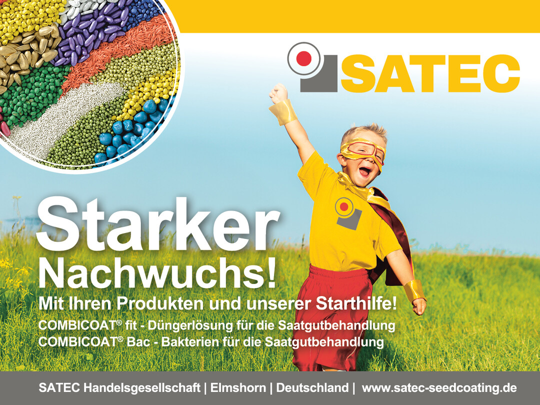 COMBICOAT Bac -Produkte für verschiedene Leguminosen - N-sammelnde Bakterien mit langer Lebensfähigkeit auf dem Saatgut (auf Vorrat beizen möglich). Beizmaschine gesucht? => SATEC CONCEPT Beizmaschinen für Saatgut aller Art