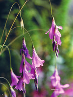 Die anmutig ausladenden Erscheinungen der afrikanischen Gattung Dierama gehören zu den grazilsten und zugleich farbenprächtigsten Exoten im Staudengarten. Elegant geformte Trichterblüten schwingen im Windspiel an bogigen Blütenschäften und lassen dabei die Grenzen zwischen botanischer Funktionalität und gärtnerischer Poesi e verschmelzen.