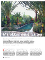 Üppige Oasengärten sind ohne Wasser nicht denkbar. Doch angesichts sinkender Grundwasserspiegel und sich ausdehnender Wüsten wird der Umgang mit dem kostbaren Nass zunehmend infrage gestellt. Durch die Integration von Sukkulentenund Dornstrauchsteppen-Vegetation versuchen Eric Ossart und Arnaud Maurières, Oasengärten ein zeitgemäßes, ökologisch vertretbares Erscheinungsbild zu geben.