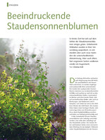 In letzter Zeit hat sich auf dem Sektor der Staudensonnenblumen einiges getan. Unbekannte Wildarten wurden in ihrer Verwendung ausprobiert, es entstanden aber auch neue Hybriden der unterschiedlichsten Abstammung. Aber auch ältere, fast vergessene Sorten verdienen wieder ein Augenmerk.