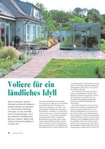 Wenn in eine alte, mehrere Gebäude umfassende Anlage ein weiteres Element zu integrieren ist, verlangt dies Einfühlungsvermögen, um das Ensemble nicht zu beeinträchtigen. Auch den stattlichen Gehölzbestand gilt es zu schonen. Neben einer Voliere entstand eine Rabatte in feurigem Rot.