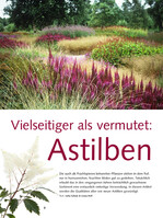 Die auch als Prachtspieren bekannten Pflanzen stehen in dem Ruf, nur in humusreichen, feuchten Böden gut zu gedeihen. Tatsächlich erlaubt das in den vergangenen Jahren beträchtlich gewachsene Sortiment eine erstaunlich vielseitige Verwendung. In diesem Artikel werden die Qualitäten alter wie neuer Astilben gewürdigt.