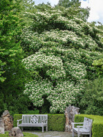 Mit den waagerecht abstehenden Ästen und einem pagodenähnlichen Aufbau nehmen Cornus alternifolia und C. controversa eine Sonderstellung unter den Hartriegeln ein. Während die beiden Arten stattliche Ausmaße erreichen, bleiben ihre panaschierten Auslesen deutlich zierlicher. Damit bieten sich sowohl für Parkanlagen als auch für kleine Gärten geeignete Gehölze an, die viel Eleganz ausstrahlen.