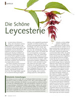 Leycesteria formosa (formosus = schön), die im Deutschen auch Karamellbeere, Lakritzpflanze oder Buntdachblume genannt wird, macht im Hochsommer mit besonderen Blüten- und Fruchtständen auf sich aufmerksam. Im Englischen wird die Art als Himalayan Honeysuckle (Himalaya-Geißblatt) und Pheasant Berry (Fasanenbeere) bezeichnet, weil die Früchte angeblich besonders gerne von Fasanen angenommen werden. Da die Art in Mitteleuropa regelmäßig bis zum Boden zurückfriert, kann sie hier wie eine Staude kultiviert werden.