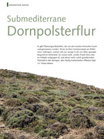 Die submediterrane Dornpolster-Felsheide findet sich als eine Gebirgspflanzengemeinschaft arider Regionen unter anderem am Mittelmeer und in Anatolien. Während sie im weiter südlich gelegenen Atlas-Gebirge in einer Höhe zwischen 2400 und 3500 m vertreten ist, kommt sie in der Sierra Nevada in Spanien zwischen 1700 und 2200 m, auf Kreta zwischen 1500 und 2450 m sowie im Taurus zwischen 1700 und 2700 m vor. Bei den Gattungen Astragalus (Tragant) und Euphorbia (Wolfsmilch) hat sich eine Vielfalt von Lebensformen entwickelt, doch auch andere Gattungen zeigen Anpassung durch charakteristische Dornpolster. Sie schützen sich durch ihre harten, zu Dornen ausgebildeten Triebe vor Beweidung und der mehr als vier Monate andauernden...