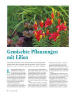 Lilien sind sehr dominante Persönlichkeiten und lassen sich nur mit sehr viel Gefühl in gemischte Pflanzungen einordnen. Die Schwierigkeit der Kombination ist eine der Ursachen für die sehr sparsame Verwendung dieser hochwertigen Pflanzen in Daueranlagen. Bei der Verwendung von Wildformen sind aufgrund ihres Habitus wie auch ihrer Bodenansprüche Grenzen gesetzt. Andere Regeln gelten, wenn Zuchtformen ins Spiel kommen. Bei diesen setzen starke Blütenfarben, Blütengrößen und -mengen, aber auch die Pflanzengestalt solch kräftige Akzente, dass es mit Nachbarpflanzen leicht zu Unverträglichkeiten kommen kann. Die größten Schwierigkeiten ergeben sich bei den Farbkombinationen. Die manchmal grellen Farbtöne in Gelb, Orange und Rot machen sehr...