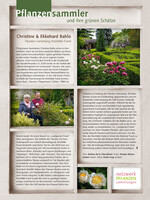 Pfingstrosen faszinierten Christine Bahlo schon in ihrer Kindheit, wenn sie mit ihren samtroten Blüten aus Nachbars Garten hervorleuchteten. Später gehörten Päonien zu den ersten Stauden, die sie im eigenen Garten pflanzte. Doch erst mit dem Eintritt in die Gesellschaft der Staudenfreunde e. V. (GdS) lernte sie die Vielfalt der "Blumenköniginnen im Gartenreich" kennen. Die unterschiedlichen Blütenformen sowie das breite Farbspektrum begeisterten auch ihren Mann Ekkehard Bahlo für die großblütigen Schönheiten.