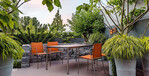 Der Begriff Townhouse steht für ein drei- bis vierstöckiges Reihenhaus, das dank eines kleinen Gartens am Boden und oftmals eines weiteren auf dem Dach die Vorzüge von Stadt und Land vereinen soll. Dieser Kompromiss auf relativ wenig Fläche ist nicht ohne Nachteile. Die Außenflächen sind oft winzig und zudem von vielen Seiten aus einsichtig. Sich unter solchen Bedingungen etwas Privatsphäre zu schaffen, ist an sich schon schwierig, wird aber durch die auch hier geltenden Nachbarschaftsgesetze zu einer wahren Herausforderung - größere Gehölze sind passé. Regelmäßig mündet die daraus entstehende Ratlosigkeit in grüne "Heckenmauern" und einen großen Sonnenschirm, der Blicke aus den Nachbarhäusern verwehren soll. Aufenthaltsqualität im Grünen...