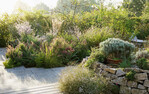 Ein von Südwest nach Nordost geneigter, flacher Hang bildet den Hauptgartenbereich, der beim Gebäude an die Küche und das Wohnzimmer grenzt. Voller Lichteinfall und ein stark lehmiger Boden waren die Ausgangsbedingungen, um einen blütenreichen, pflanzenbetonten Garten entstehen zu lassen - gerne mit mediterranem Charakter. Eigenes Obst und Wasser in verschiedenen Fassungen sollten ebenso wenig fehlen wie verschiedene Aufenthalts- und Liegebereiche, um die Sonne zu allen Tageszeiten genießen zu können (wirklich schattige Bereiche gibt es nur im Vorgarten auf der Nordseite des Gebäudes). Ein schonender Umgang mit der Natur und Raum zur Weiterentwicklung, sowohl ökologisch als auch gestalterisch, sollten beachtet werden. Aus allen Wünschen...