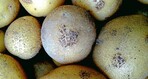 Bei der Wurzeltöterkrankheit (3) findet man an den Knollen bei der Ernte zahlreiche kleine schwarzbraune pockenartige Pusteln oder krustige Beläge, die Sklerotien (Dauerkörper) des Erregers. Dies wird als "Pockenkrankheit" bezeichnet. Die Sklerotien lassen sich leicht von der Knollenoberfläche ohne Verletzung der Schale entfernen.