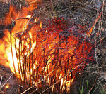 Ganz wie in der Natur können - eine Genehmigung der Feuerwehr vorausgesetzt - Prärie- und Steppenpflanzungen auch mit Feuer "zurückgeschnitten" werden. Hier brennt ein nordamerikanisches Präriegras Schizachyrium im Hermannshof.