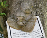Offenbar scheint dieser Esche das an den Stamm geschlagene Schild nicht so recht zu behagen. Abhilfe: Einfach überwachsen. Gleichzeitig zeigt sie, wie flexibel Gehölze nicht nur auf falschen Schnitt reagieren können.