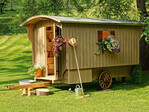 Eigentlich ist er längst Geschichte, ein Inbegriff ländlicher Romantik, wird aber hier wieder gebaut, mit hohem handwerklichem Können und viel Liebe zum Detail: der Schäferwagen. Auch als Gartenhaus macht er eine gute Figur. Er besteht aus verschiedenen heimischen Hölzern (Eiche, Lärche, Fichte), ist stabil und winddicht, das gewölbte, hinterlüftete Dach wetterfest ausgeführt. Farbgestaltung nach Wahl. Der geschmackvoll eingerichtete Innenraum verspricht Gemütlichkeit. Darüber hinaus sind Anfertigungen nach individuellen Bedürfnissen und Wünschen möglich. (* Friedrich Schiller: "Don Carlos")