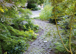 Unser Ziel war es, diesen Prozess so zu komprimieren, dass in diesem neuen Garten von Anfang an diese "Schichten" nachgeahmt werden sollten. Dazu haben wir verschiedene Kulturen gemischt: Japan, England, Deutschland, Taiwan, da jede von diesen für unsere Kunden und auch für uns auf unterschiedliche Weise von Bedeutung ist. Strukturell ist das Design dem klassischen Japanischen Garten sehr ähnlich, aber statt kleiner Trittsteine gibt es hier große Platten, die Stufen, Terrassen und Sitzplätze bilden. Dazu Elemente des Englischen Gartens, der wieder selbst von Chinesischen Gärten beeinflusst wird, die wiederum Vorläufer Japanischer Gärten sind. So entstand eine kontinuierliche Erschließung des Raumes. Und dann ist da noch Deutschland, rein,...