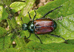 Der Gartenlaubkäfer wird manchmal in der Literatur auch als Gartenkäfer oder irreführend als Junikäfer bezeichnet. Er ist aber mit dem Junikäfer wegen des unterschiedlichen Habitus nicht zu verwechseln. Der Gartenlaubkäfer (Phyllopertha horticola) ist 0,9 bis 1,2 cm groß. Sein Kopf und Halsschild sind metallisch grün bis grünblau und die Flügeldecken rotbraun sowie leicht behaart. Die Flugzeit dauert von Ende Mai bis Ende Juni. Während dieser Zeit findet man an sonnigen Tagen vornehmlich in den späten Vormittagsstunden zahlreiche Käfer dicht über der Rasenfläche fliegen.