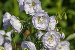 So entstand in England um 1890 die große, weiß, aber ungefüllt blühende 'Backhousei' und aus dieser bei Ruys 'Moerheimi'. Diese Sorte ist gedrungener als die 1 m hohe 'Backhousei', nur 50 bis 60 cm hoch, aber dicht mit Blüten besetzt, und die Stängel hängen nicht, sodass man die üppig gefüllten Blüten in ihrer vollen Schönheit bewundern kann. Sie sind in der Tat spektakulär und für Glockenblumen ungewohnt. Nonne & Hoepker fanden in ihrem Katalog, sie sei eher den Blüten einer Kamelie ähnlich. Der Blütendurchmesser beträgt beachtliche 7 bis 8 cm.