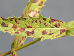 Wenn auf den Blättern des Eisenkrautes dunkelrote Flecken zu erkennen sind, die deutlich von den Haupt- und Seitenadern begrenzt sind, kann es sich um einen Befall mit Blattnematoden handeln. Zu Befallsbeginn erscheinen glasige gelbe Flecken, die sich später rötlich und dann braun verfärben und nekrotisch werden. Der Befall beginnt in der Regel an den unteren Blättern und breitet sich im Lauf der Vegetationsperiode nach oben aus.