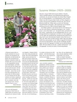 Am 5. August 2020 starb Susanne Weber in Staufen. 1925 in Stuttgart geboren und mütterlicherseits gärtnerisch vorbelastet, war sie doch die Enkelin des letzten Ober-Hofgärtners von König Wilhelm II. von Württemberg, lernte Susanne Weber nach dem Krieg bei Helen Gräfin von Stein-Zeppelin in Laufen und trug einen erheblichen Teil dazu bei, dass sich der Betrieb ab Mitte der 1950er-Jahre zu einem der führenden Staudenbetriebe entwickelte. 1957 absolvierte sie die Meisterprüfung und war bis 1996 im Betrieb Zeppelin tätig.