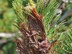 Der Schaderreger befällt neben Wacholder auch Fichten und Tannen, ist aber meist an Kiefern besonders auffällig. Aus der Ferne betrachtet können betroffene Pflanzen oder Bestände den Eindruck erwecken, als wären sie durch Feuer geschädigt, auch ein dichter Rußtaupilzbelag auf honigtaubedeckten Pflanzen könnte vermutet werden.