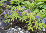 Am Naturstandort, in montanen Wäldern, Gebüschen, Schluchten erhalten die Pflanzen die existentielle Grundfeuchte in Trockenperioden durch Nebel und nächtliche Abkühlung mit Taubildung. Dann gelingt es Clematis alpina, gelegentlich auch auf Kalkfelsen in kleinen Substrattaschen zu gedeihen! Die extremen Bedingungen an solchen Standorten spiegeln sich in einem deutlich kompakterem und reduzierterem Wuchsverhalten und bestätigen augenfällig, dass Pflanzen, die die genetische Veranlagung haben, sich bis in 2 oder 3 m Höhe zu winden, auch mit einem Korsett zurechtkommen können und dann trotzdem - oder erst gerade dann - einen besonderen Charme entfalten.