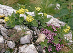 Zwei Drittel des Nationalparks sind bewaldet, wobei Rotbuchen-Fichtenwälder und Lärchen dominieren. Als charakteristische Baumart der Wärme liebenden Waldgesellschaften wachsen bis in Höhen von etwa 1.200 m Hopfenbuchen (Ostrya carpinifolia) und an sonnigen trockenen Hängen im Süden des Nationalparks gedeihen Blumen-Eschen (Fraxinus ornus). Begleitet werden diese Bestände von wärmeliebenden Arten wie Berg-Gamander (Teucrium montanum) oder Purpurrotem Meier (Asperula purpurea). Auch die Bart-Nelke (1; Dianthus barbatus) ist auf Bergwiesen und an Waldrändern als Endemit der südlichen Kalkalpen auch im Nationalpark Triglav anzutreffen. Von Juni bis September entfaltet sie auf 30 bis 70 cm hohen Stängeln ihre roten Blüten in endständigen...