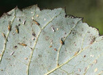 Meist ab Sommer entsteht auf den Lindenblättern ein glänzend-klebriger Überzug durch Honigtauausscheidungen von Blattläusen. Darauf weist auch der in großen Mengen von den Bäumen herabtropfende Honigtau, der alle Gegenstände darunter klebrig verschmutzt, verstärkt durch die Rußtaupilze auf dem Honigtau.