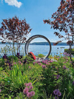Dass die LGS Überlingen mit einjähriger Verspätung gestartet ist, kann man angesichts solcher Perspektiven verschmerzen. Einer der schwimmenden Inselgärten mit Zierlauch und Bart-Iris vor der Bodensee-Kulisse heißt vollkommen zu Recht: „Die Leichtigkeit des Seins“ (Grimm garten gestalten, Hilzingen).