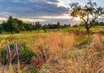 Der Garten von Angelika und Peter Funke besteht genau genommen aus zwei Gärten. Zum einen gibt es den Hausgarten mit Terrasse, wenig Rasen und umfangreichen Stauden-Gräser-Zwiebelpflanzen-Beeten. Der neuere Gartenteil liegt in unmittelbarer Nachbarschaft zum Grundstück, wo die beiden leidenschaftlichen Staudenliebhaber eine Fläche in einer Streuobstwiese kaufen konnten. Dort haben sie 2018 begonnen, mit viel Herzblut und gestalterischem Geschick eine Staudenwiese anzulegen. Sie ist zwar noch nicht ganz fertig, weist aber schon jetzt beeindruckende Dimensionen und Pflanzenvielfalt auf.