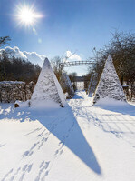 der Formschnitt-Eiben hielt er sich noch länger. Schnell waren auch die Hasen – nur Spuren im Schnee verrieten sie.