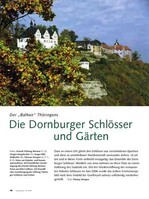 Dass an einem Ort gleich drei Schlösser aus verschiedenen Epochen und diese in unmittelbarer Nachbarschaft zueinander stehen, ist selten und in dieser Form vielleicht einzigartig: das Ensemble der Dornburger Schlösser. Nördlich von Jena nehmen sie ihren Platz an einem Kalkhang des Saaletals ein. Mit der Wiedereröffnung des restaurierten Rokoko-Schlosses im Juni 2006 wurde das äußere Erscheinungsbild nach dem Vorbild der Goethezeit nahezu vollständig wiederhergestellt.