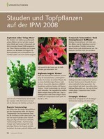 In „Gartenpraxis“ Nr. 4/2008 stellten wir neue Gehölze vor, die auf der Internationalen Pflanzen-Messe (IPM) in Essen von Gärtnereien und Handelsunternehmen präsentiert wurden. Hier folgen nun Stauden, Sommerblumen und Topfpflanzen, die uns beim Rundgang über die Messe auffielen.