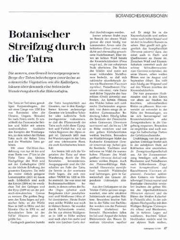Botanisches/Exkursionen Botanischer Streifzug durch die Tatra