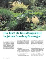 In „Gartenpraxis“ Nr. 2/2002 wurde beschrieben, welche Wirkung die Farbe Grün ausübt. In Nr. 3/2002 war von den verschiedenen für die Gestaltung relevanten Merkmalen der Blätter die Rede. In diesem dritten und letzten Teil unserer Serie über Grün erfahren Sie, wie in Kenntnis der Merkmale und...